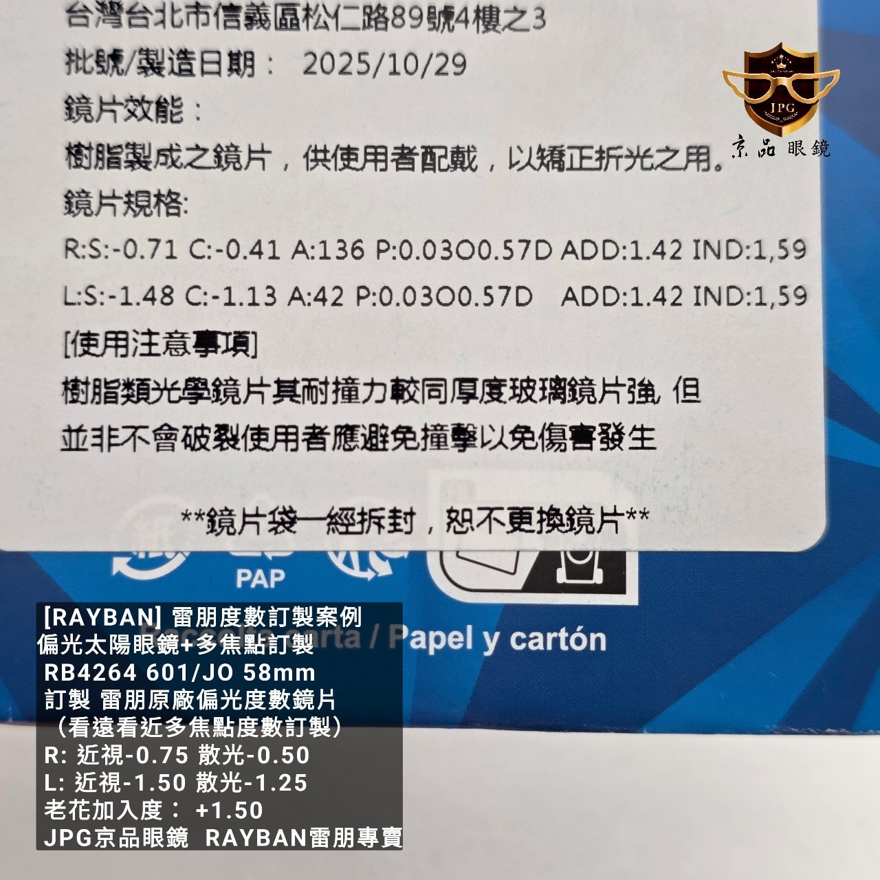 雷朋原廠偏光鏡片+多焦案例分享
