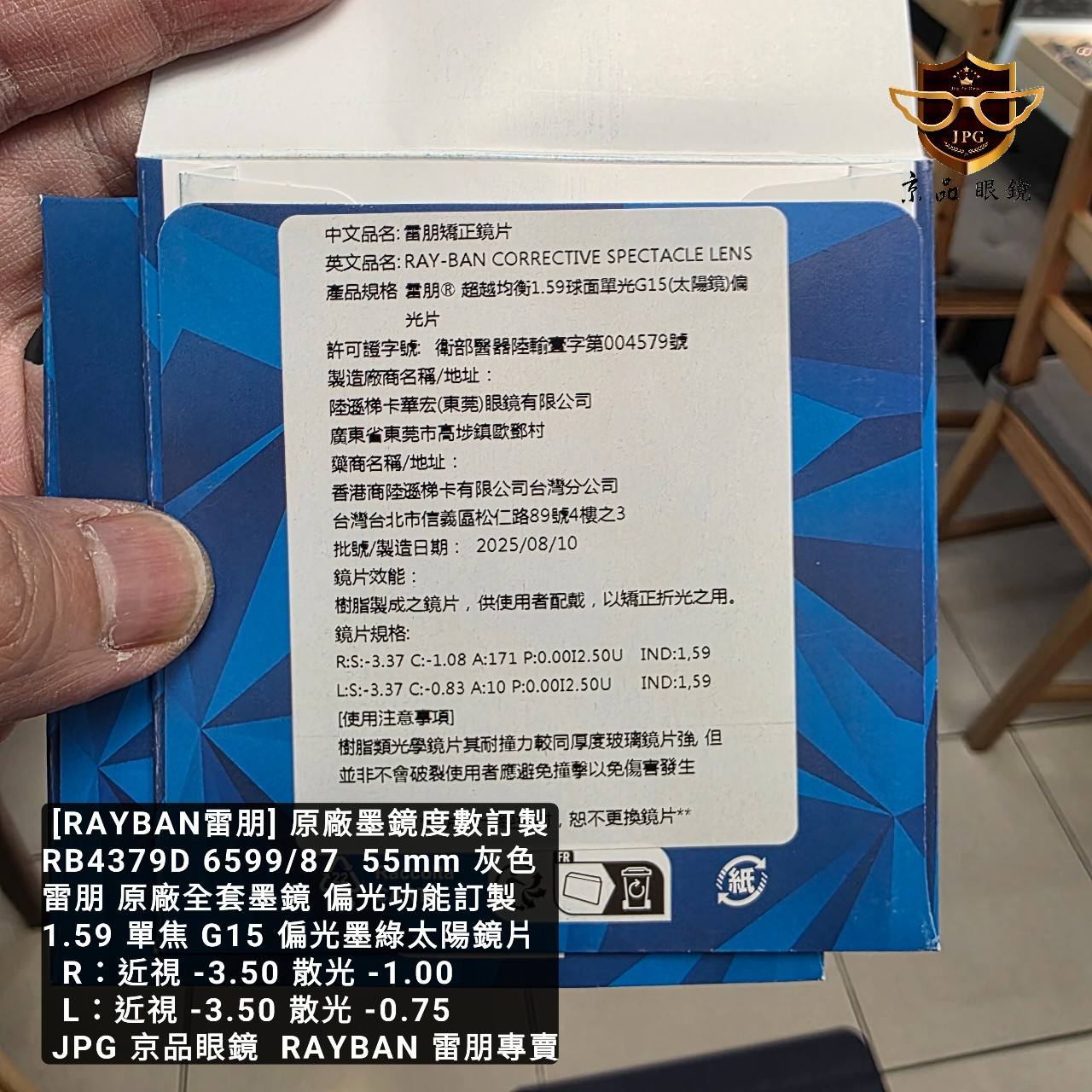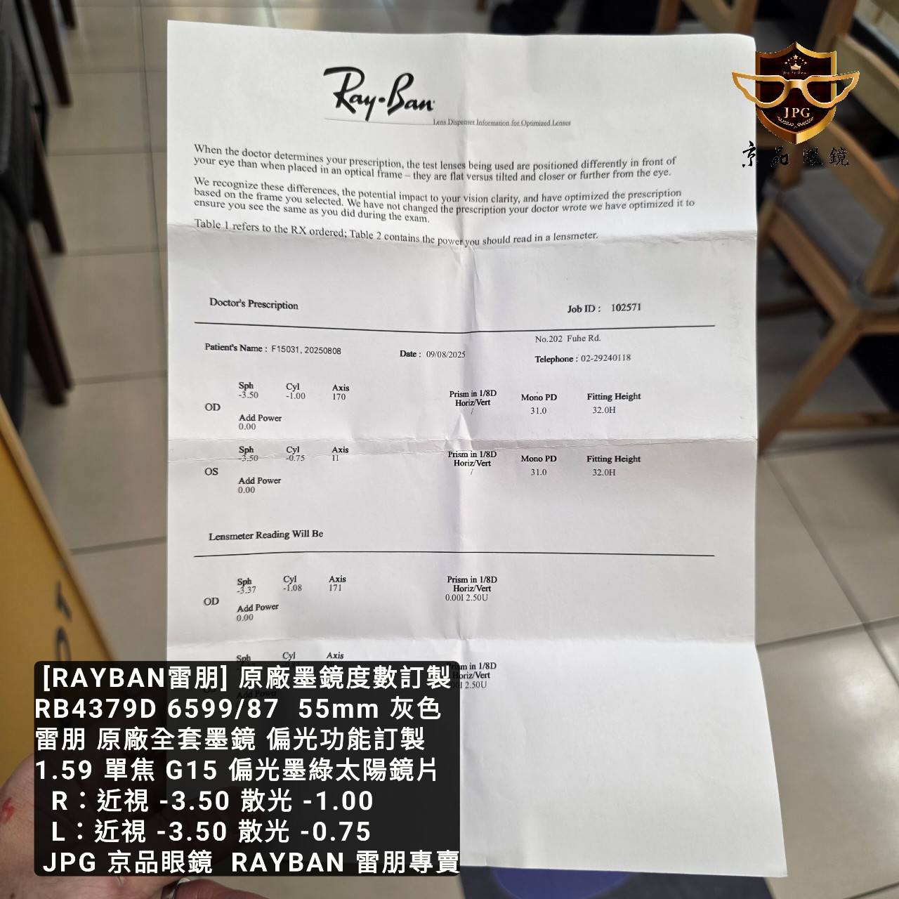 本次的雷朋度數偏光太陽鏡案例