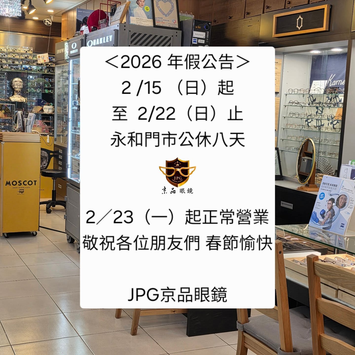2026 京品眼鏡 年假公告
